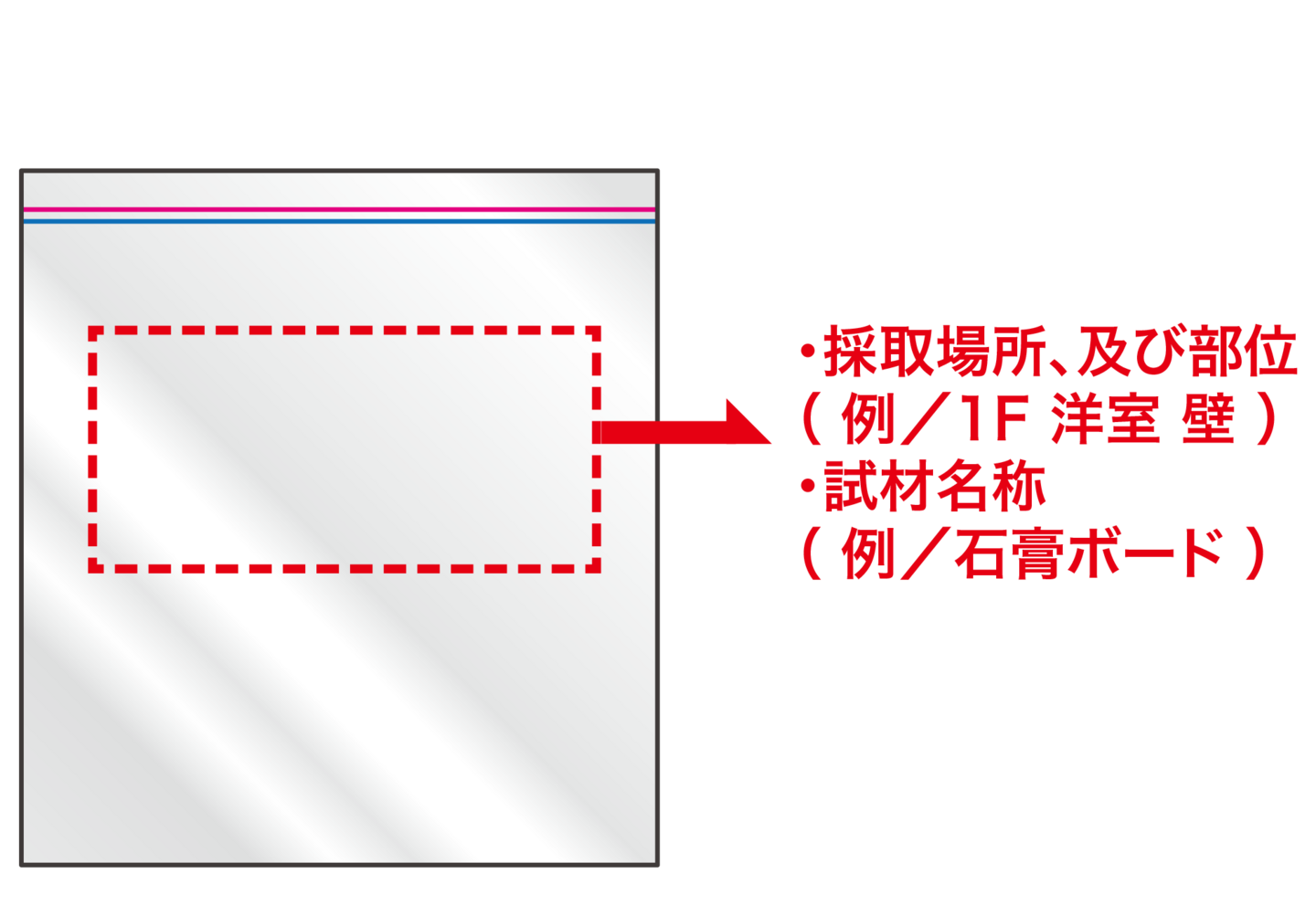 - 識別のために、1検体ずつ袋に入れ、項目(採取場所・試材名称)を明確に記載してください。